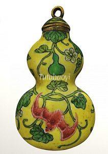 谐音详情: ‘葫芦’与‘福禄’谐音;取‘蝙蝠’ 中 ‘蝠’ 与 ‘福’ 谐音,以加强祝愿。