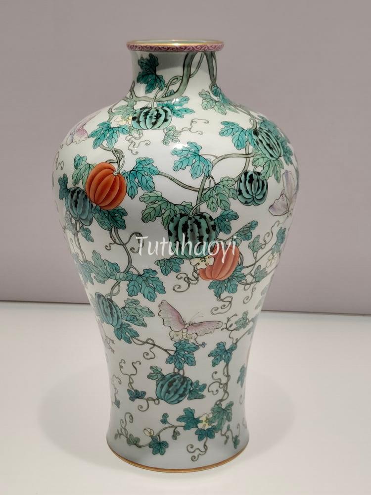 The phrase ‘gua die mian mian 瓜瓞绵绵’ is a variation of a line from the poem Mian 绵 collected in the section of the Greater Odes of the Kingdom (Daya 大雅) in the Classic of Poetry (Shijing 诗经). It is used as a metaphor for the continuation and flourishing of the family or clan along the m...