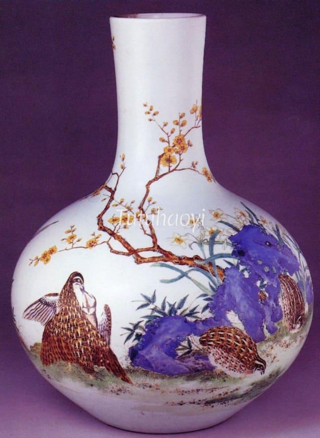 Quail is a middle-sized bird, and is nowadays farm-raised for table food and their eggs. However, they play an interesting role in traditional Chinese art with an auspicious meaning.