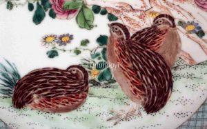 Quail is a middle-sized bird, and is nowadays farm-raised for table food and their eggs. However, they play an interesting role in traditional Chinese art with an auspicious meaning.