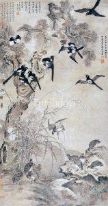 The zhi pheasant 雉, also called Huachong 华虫 in ancient China, is one of the most popular birds depicted in traditional Chinese art. Due to its characteristic multicoloured long-tail, the pheasant is associated with the wide-ranging literary talents of the emperor. It is also used in pun rebus pictures, as ‘z...