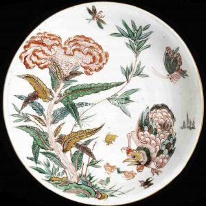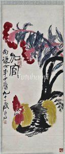 ‘Guan 冠’ in the Chinese name ‘ji guan hua 鸡冠花’ for ‘cockscomb’ is a pun on ‘guan 官’, which means ‘high-ranking official’. The crest on the head of a rooster is also called ‘guan 冠’ in Chinese. Thus, the appearance of both the cockscomb and rooster in a picture represents the auspicious...