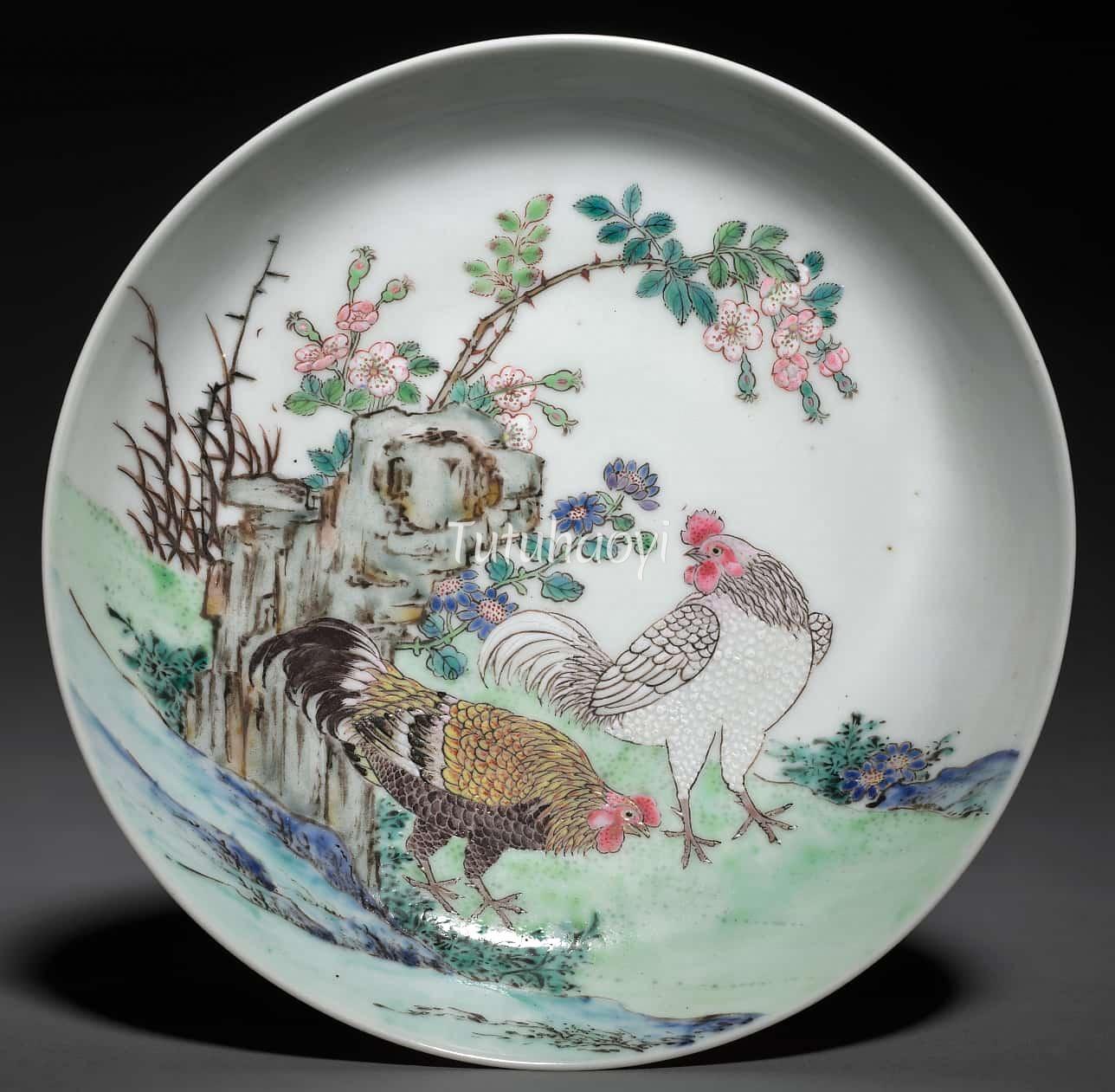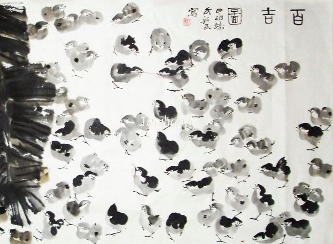 ‘Ji 鸡’ is a generic name for cockerel, hen, and chick, and sounds the same as ‘ji 吉’ for ‘good fortune’. Thus, a picture of many chickens is used to represent ‘abundant good fortune’.