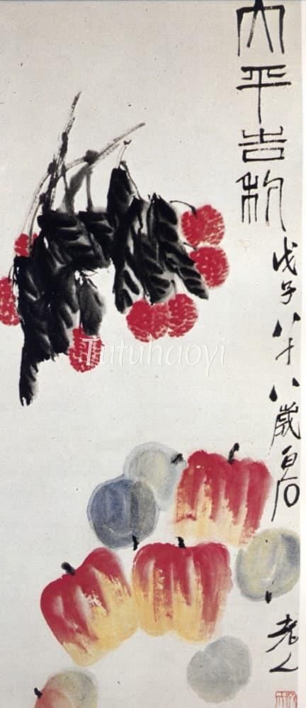 The image of apples, in addition to cue a pun on the ideal of ‘universal peace’, may be combined with lychee or tangerine to form pi...