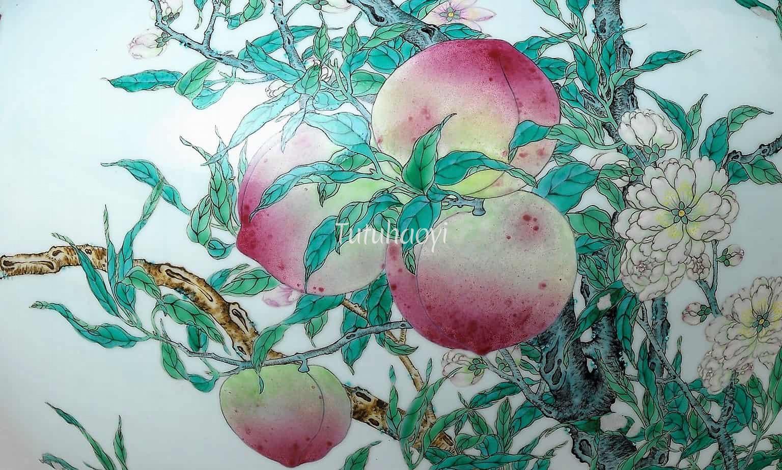 The peach fruit usually symbolises longevity or immortality in Chinese pictorial art. The origin of this idea started from legends dating back to the third century. Read Dr Yibin Ni...