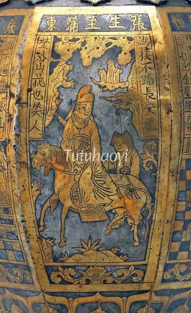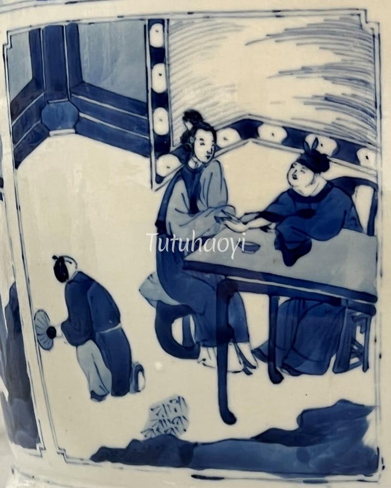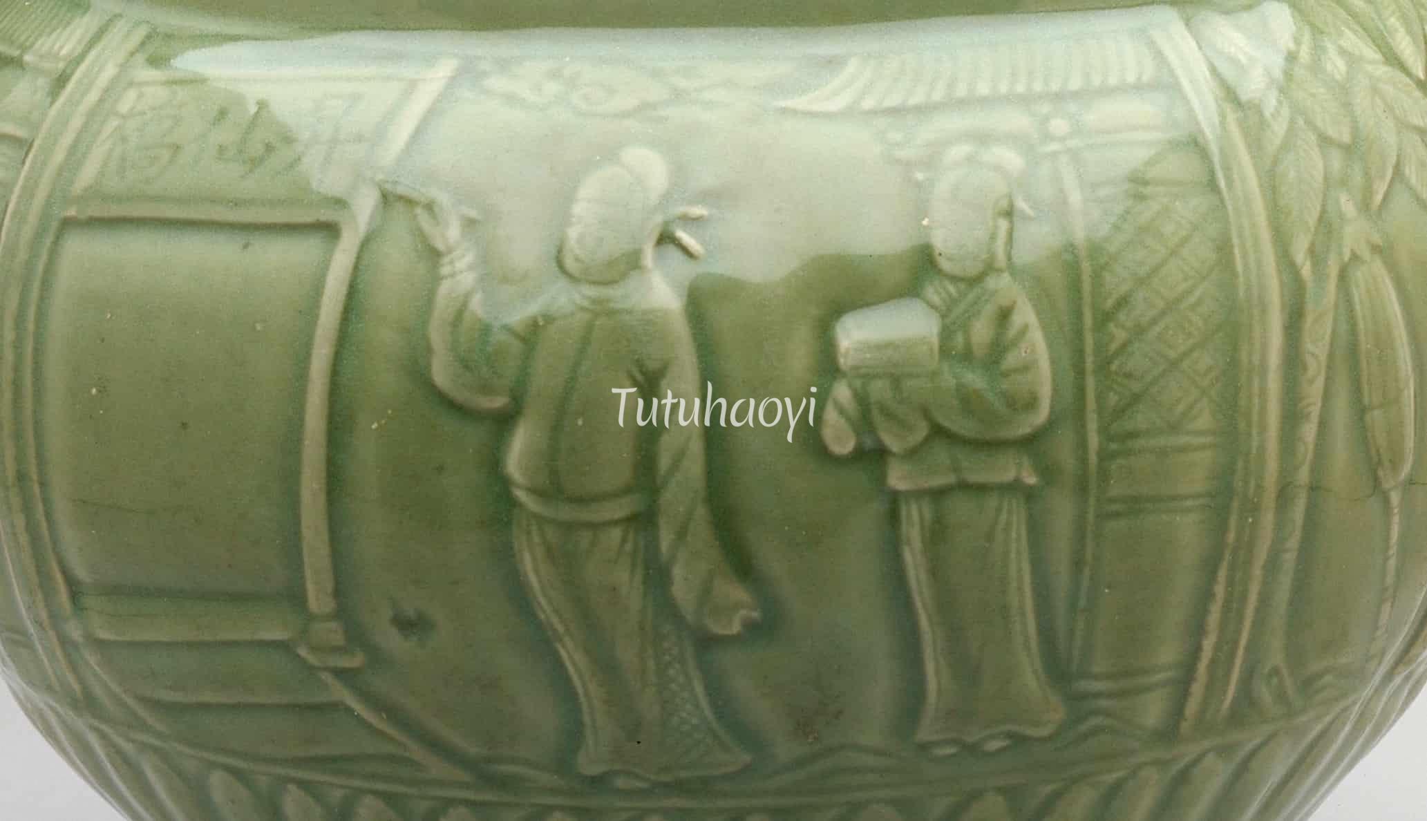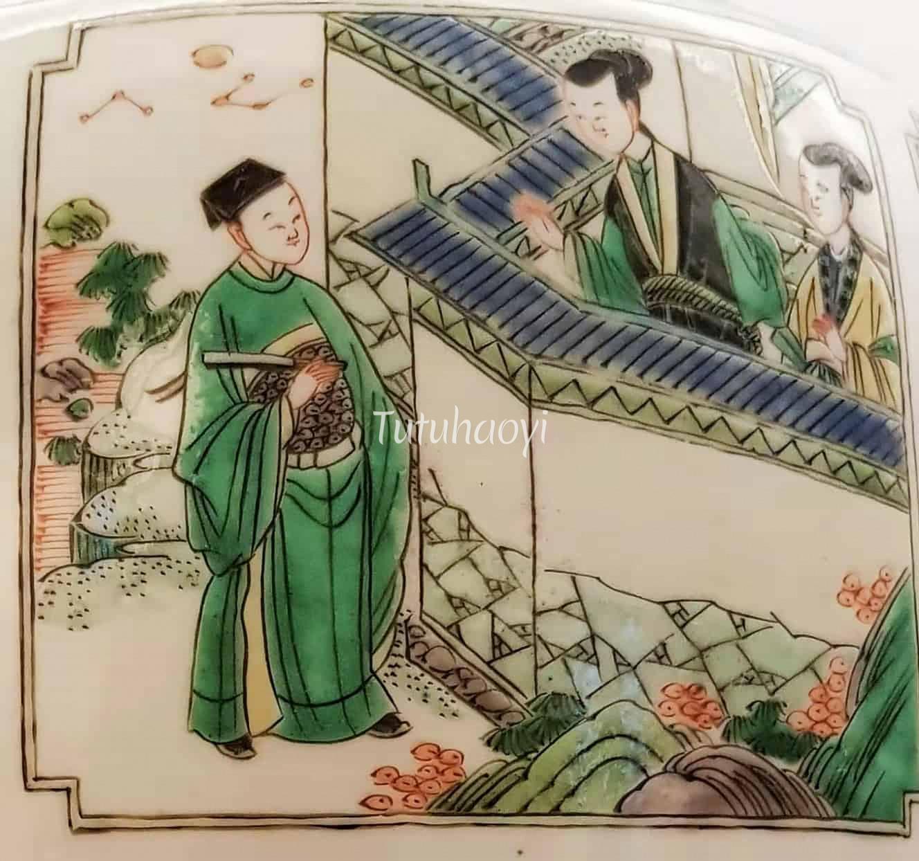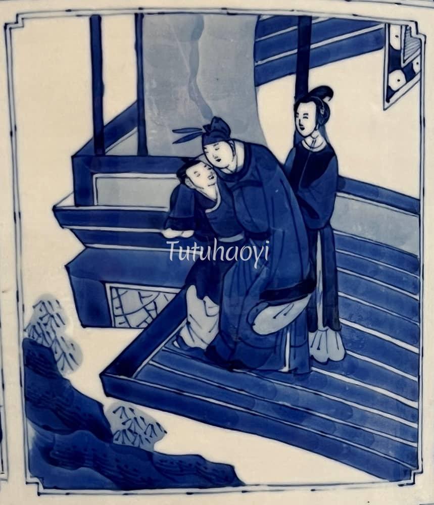 The story scene comes from a marvel play Legend of the Jade Hairpin, which is not to be confused with the scene in Romance of the Western Chamber. Read the following article to find out details of the story and how this figural scene is depicted.<...