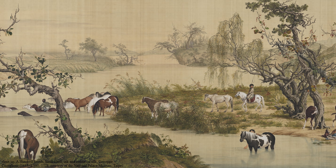 close-up, A Hundred Steeds, hand scroll, ink and colour on silk, Giuseppe Castiglione (1688–1766), 1728, courtesy of the National Palace Museum, Taipei
